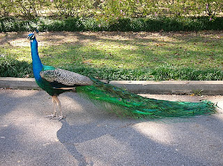 Here in Houston we have peacocks that live in some neighborhoods and just roam the streets. Yeah, not your average bird to see roaming around. My girlfriend and I decided to check them out one day while we were in the area. The picture above I took from the passenger side of the car. You can get so close to them but it still freaked me out because my luck it would fly up on my face and have at it. The rumor is that a wealthy homeowner had these as pets in the area and let them go. No one really knows, (I am sure someone does) but I can't find any information about them. However, they walk about freely. My friend and I stopped and stared for about 45 minutes because who the heck can believe peacocks are running through Houston wild? They were in the street, in yards, on top of homes, and sitting on fences. You name a spot I’ll bet a peacock was there. They were beautiful and very loud and made me happy I didn't live on that street.